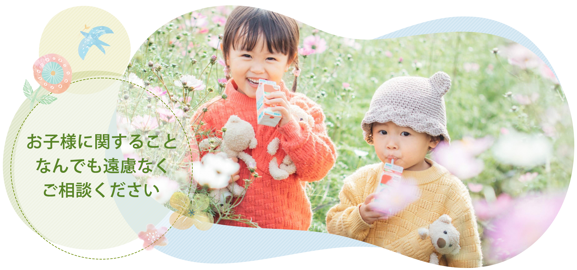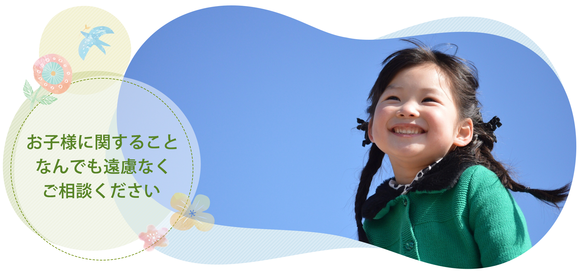 風邪などの一般診療に加え、皮膚のこと、便秘、夜尿、発育や発達、育児の相談などお子様に関わることならなんでもご相談をお受けします。必要に応じて専門病院へ紹介させていただきます。