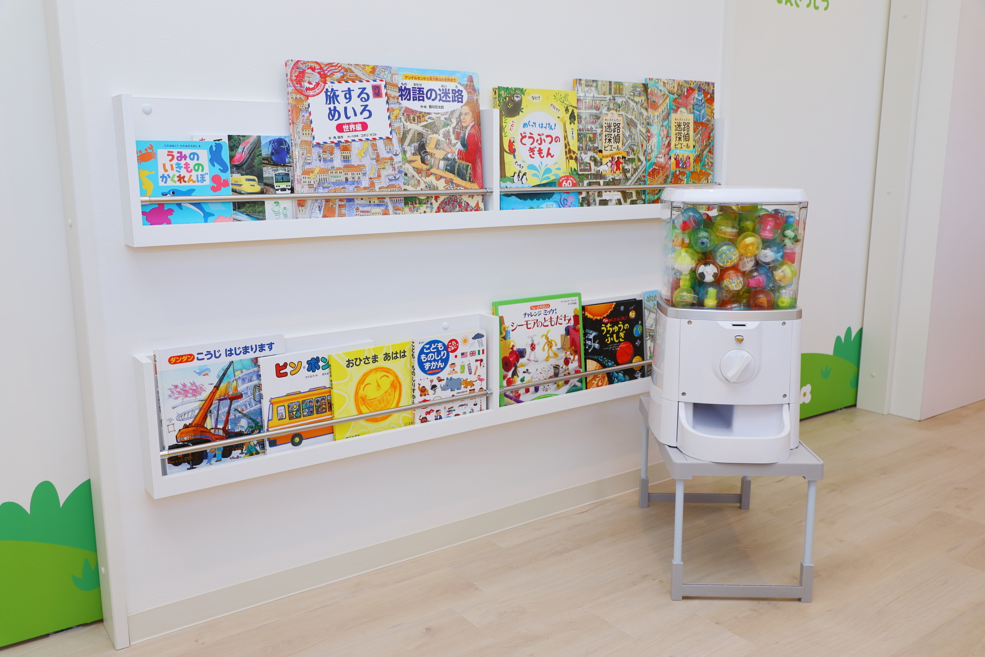 お子さまが待ち時間を穏やかに過ごせるよう、絵本コーナーを設けており。