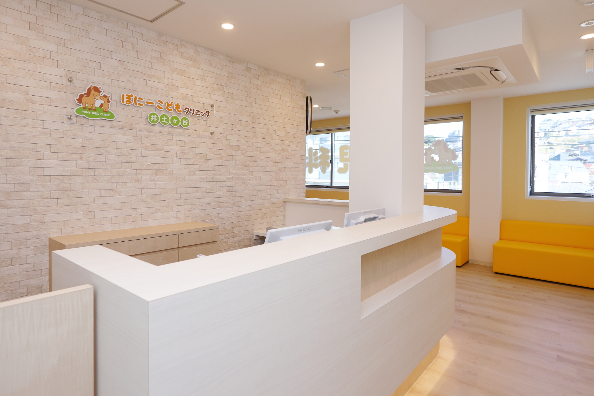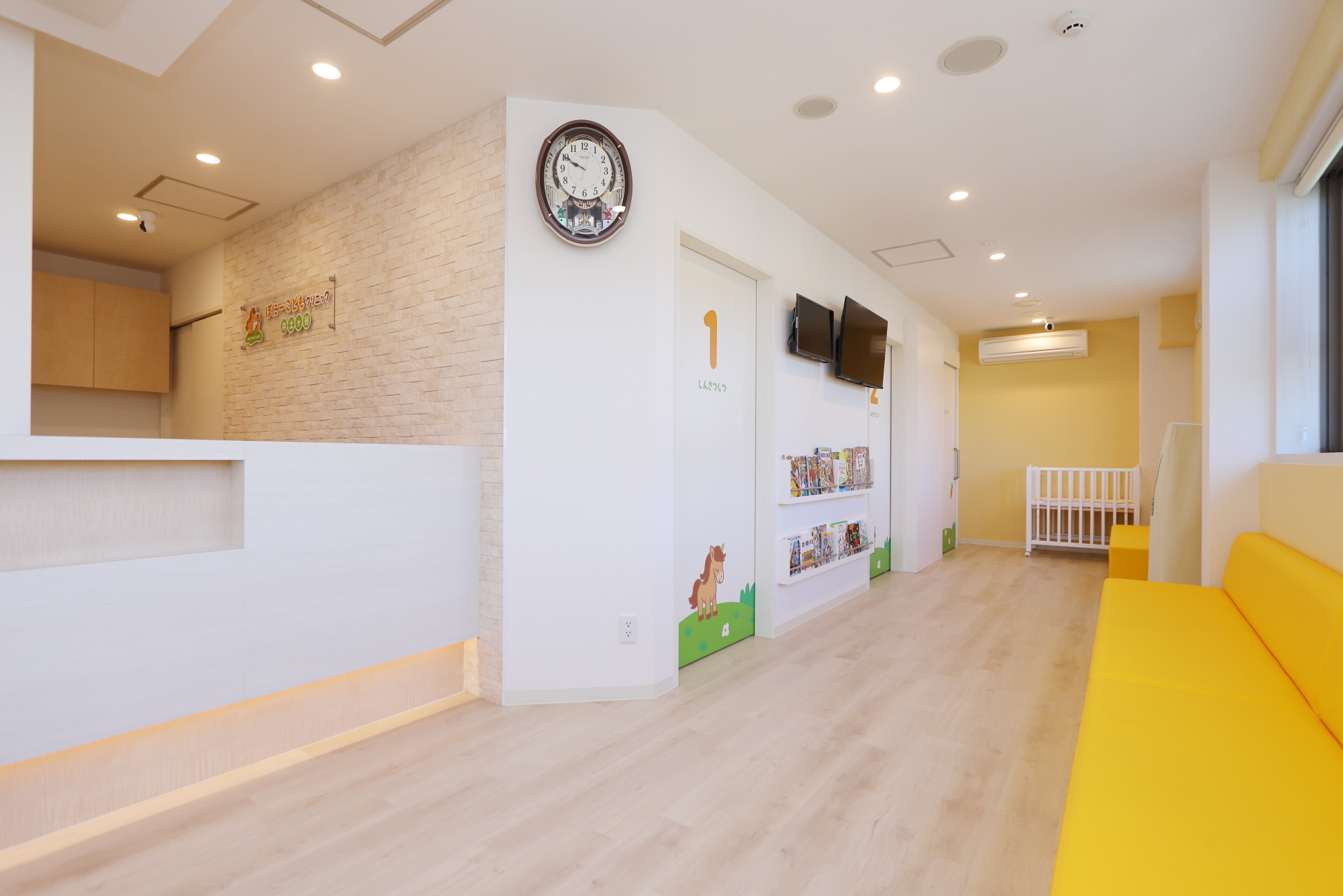 お子さまがリラックスして過ごせるよう、明るく清潔な空間を心がけています。診察までの時間も、少しでも安心してお待ちいただける待合室です。